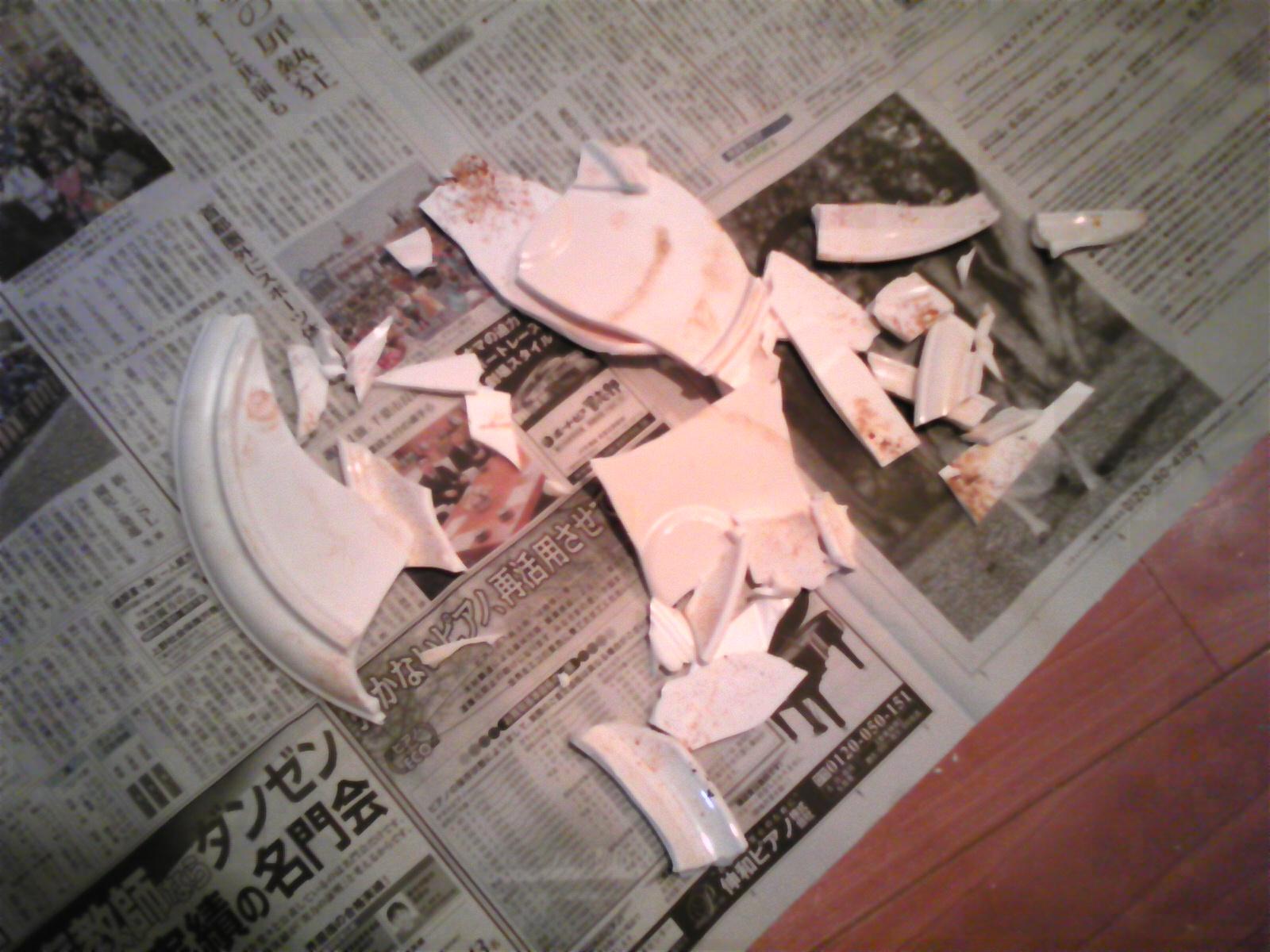 画像を見てもらえばわかると思うのですが、さきほど皿を割ってしまいました。